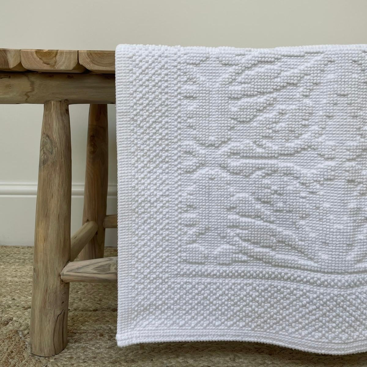Elevate your bathroom with the understated elegance of our Bath mat range, designed to bring a touch of luxury and warmth to your daily routine. Made from 100% cotton, this soft and absorbent bath mat feels gentle underfoot while offering a plush, spa-like experience every time you step out of the bath or shower. The hamman bath matt has beautiful and subtle floral motifs.