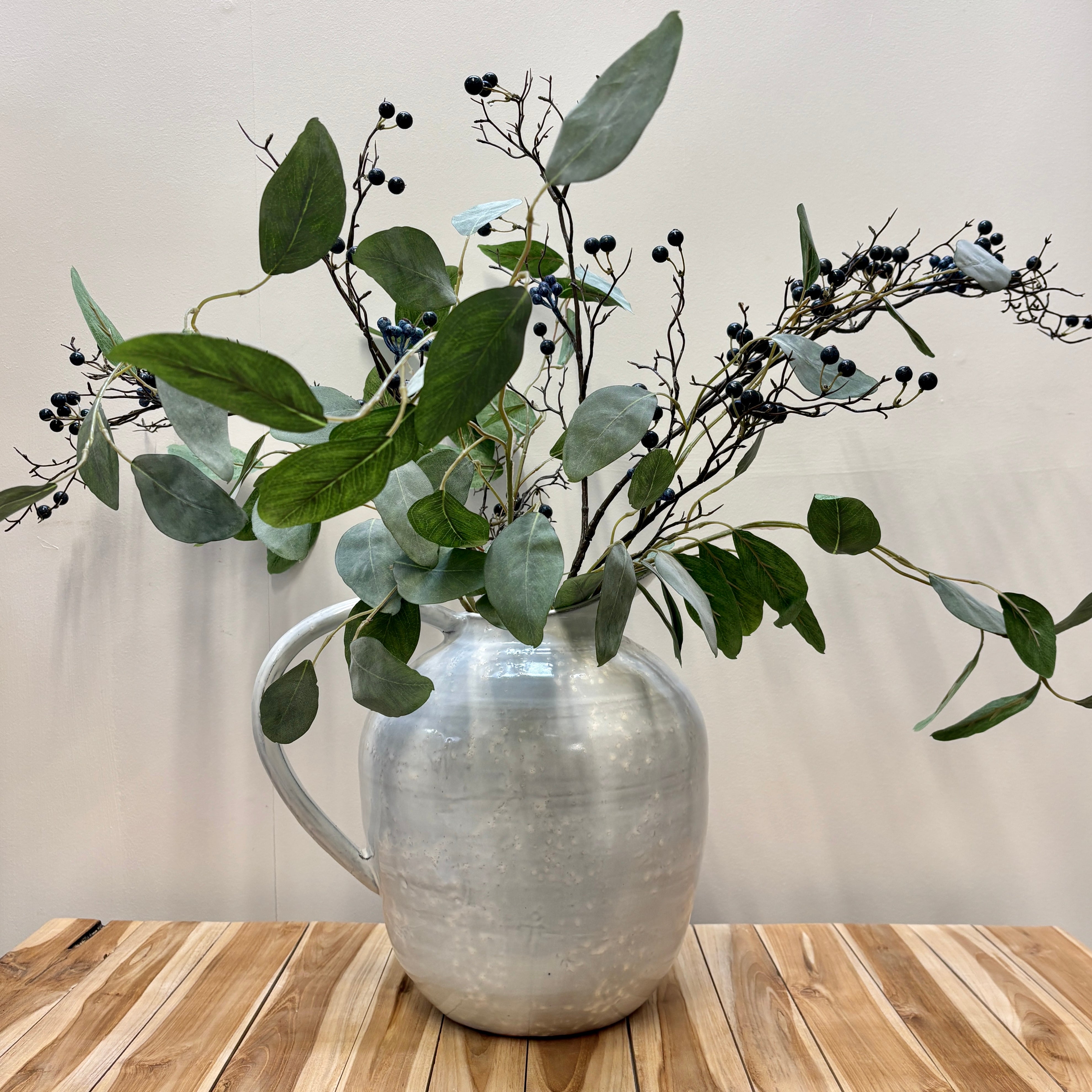 Enhance your floral arrangements with our Blue berries Spray Stem, a stunning, realistic piece that brings a touch of nature's beauty to any setting. Durable and flexible, the stem can easily be bent and shaped to fit your creative vision, whether you’re designing wreaths, centerpieces, or adding a unique flair to existing floral displays. With its realistic charm and lasting quality, this faux blueberry spray is the perfect choice for bringing elegance and freshness to your home décor or special events, season after season.