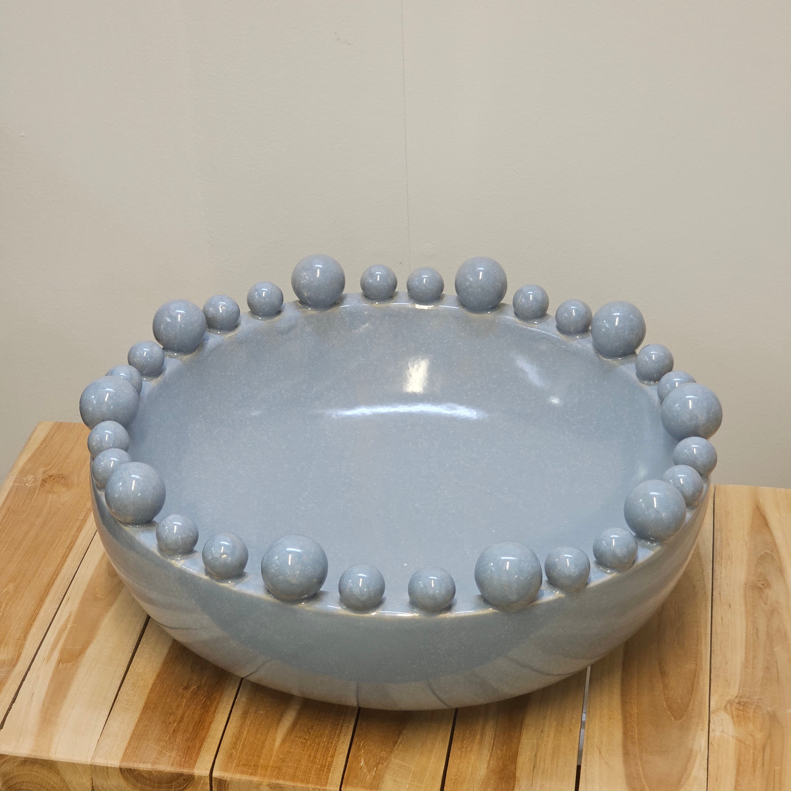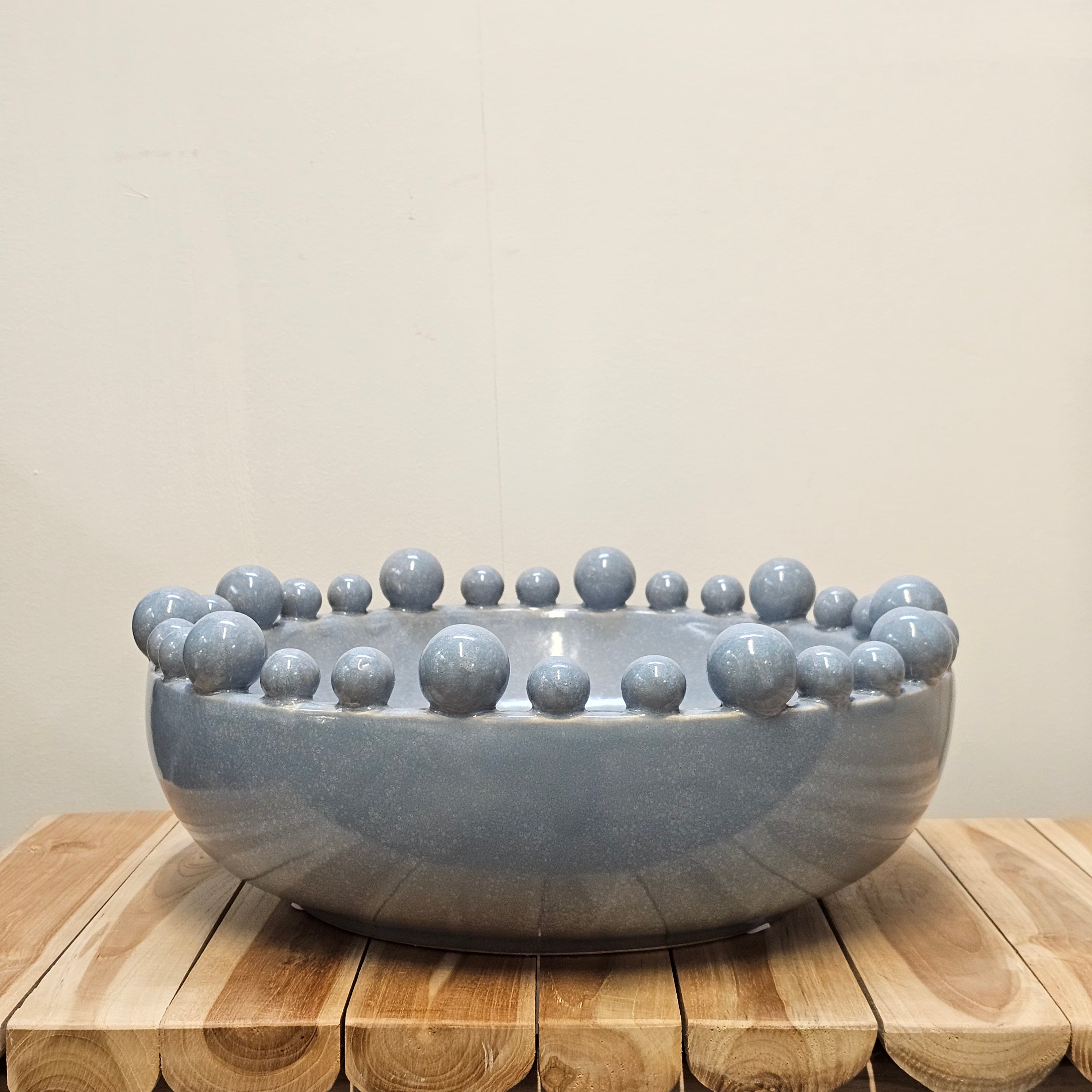Our Bobble Bowl pairs striking design with artisan charm. Handmade and finished in a soft glazed blue, its bold bobble rim makes it a standout accentOur Blue sands bobble bowl is the perfect accent to any space. Its handmade qualities makes it one of a kind.