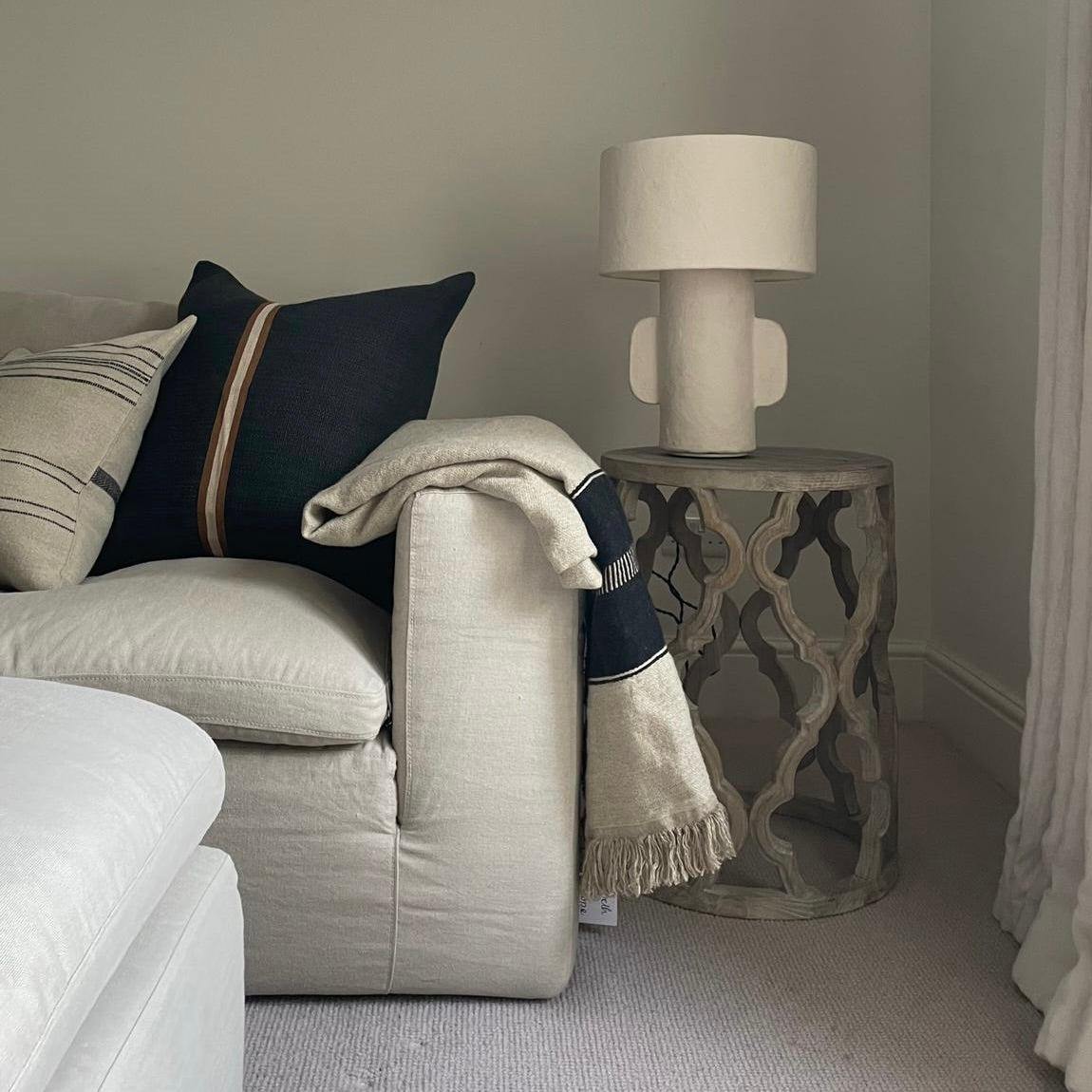 The faded black colour lends a timeless, understated charm, effortlessly blending into both contemporary and traditional interiors. Its deep, muted hue adds an air of modern sophistication, creating a versatile accent that enhances your sofa, bed, or favorite armchair with a touch of quiet luxury.