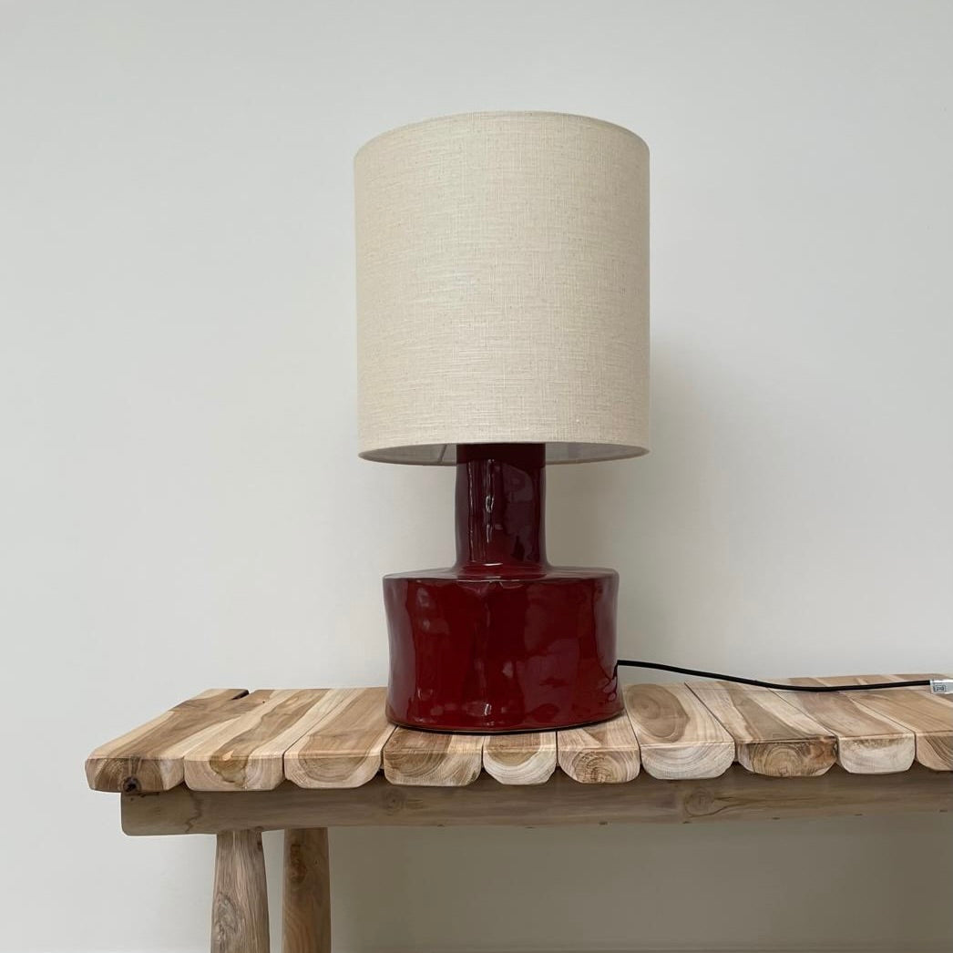 The Marie Table Lamp is a beautiful blend of artisanal craftsmanship and contemporary design, created by renowned designer Marie Michielssen. Made from stoneware, the lamp features a striking red pedestal and a soft beige shade, radiating warmth and coziness. Its irregular, hand-crafted shape adds a unique, organic touch, showcasing the beauty of pure craftsmanship.