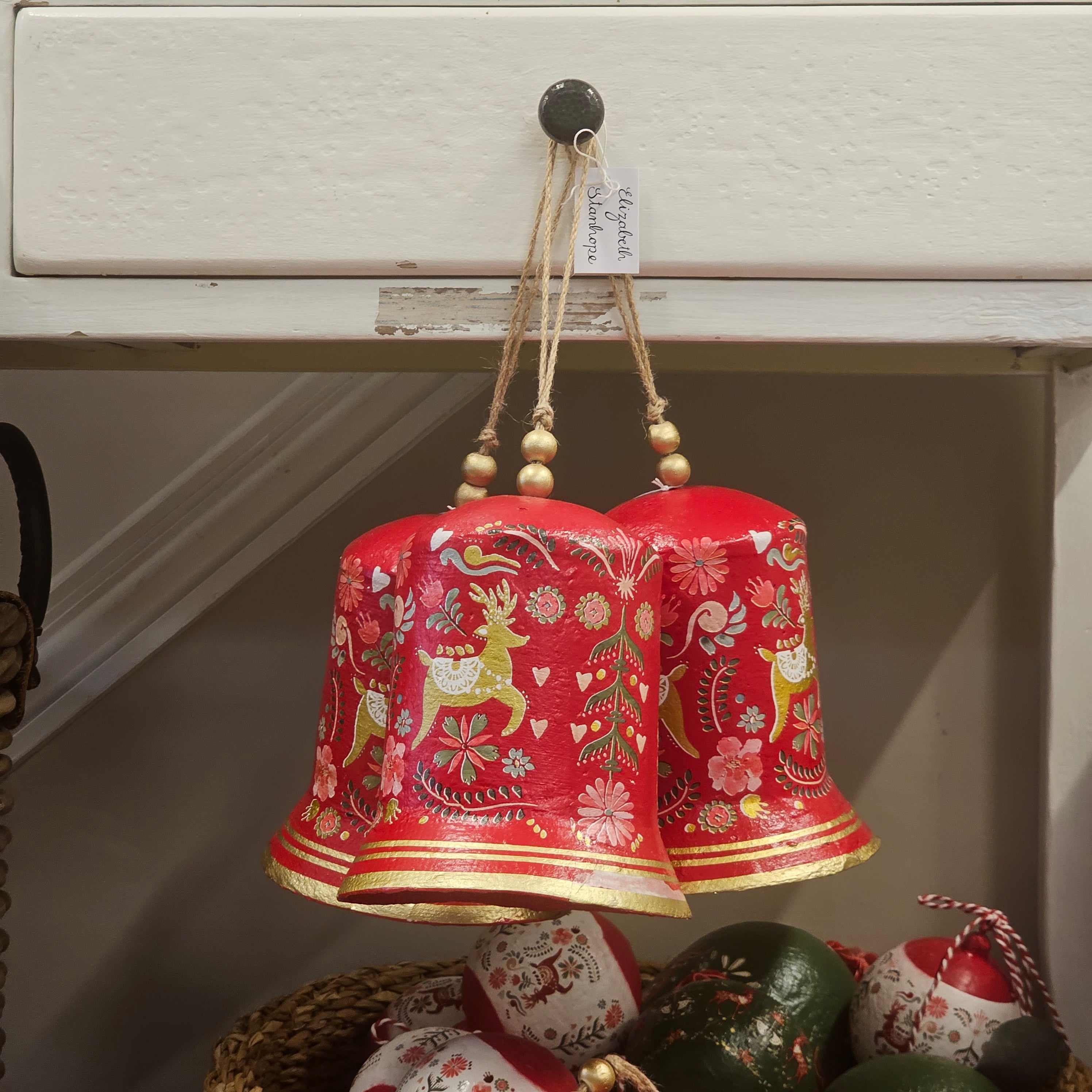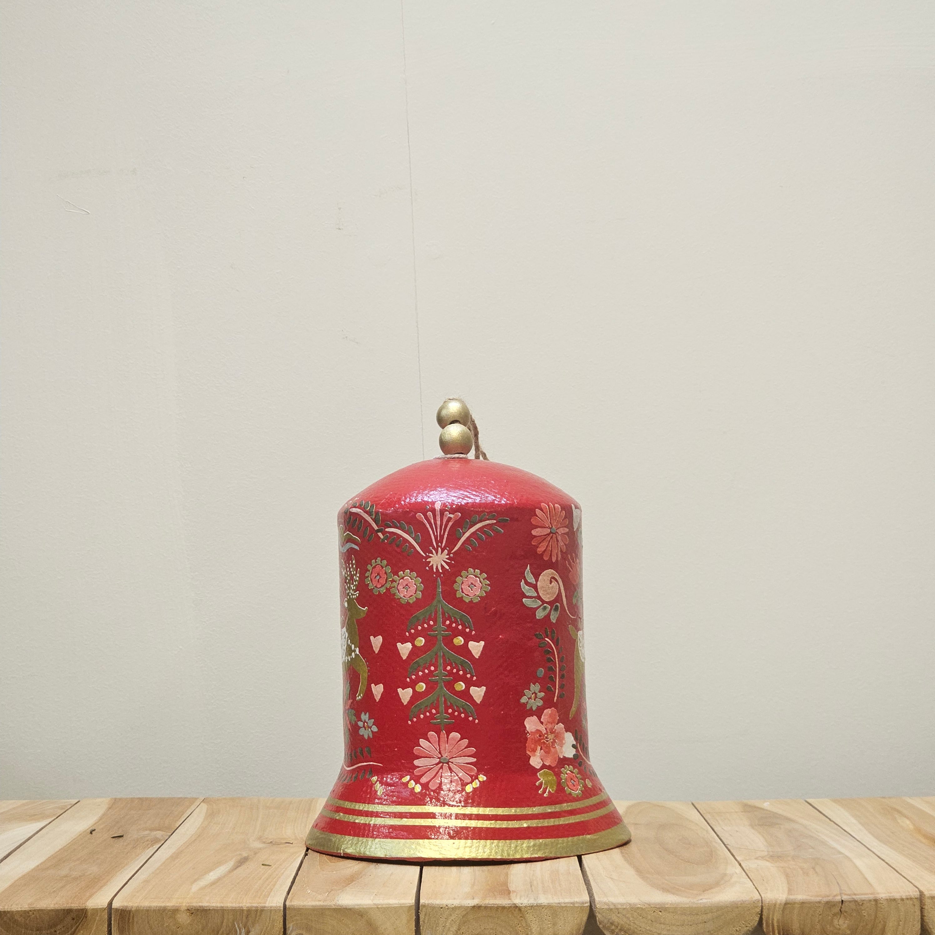 Papermache red reindeer bell