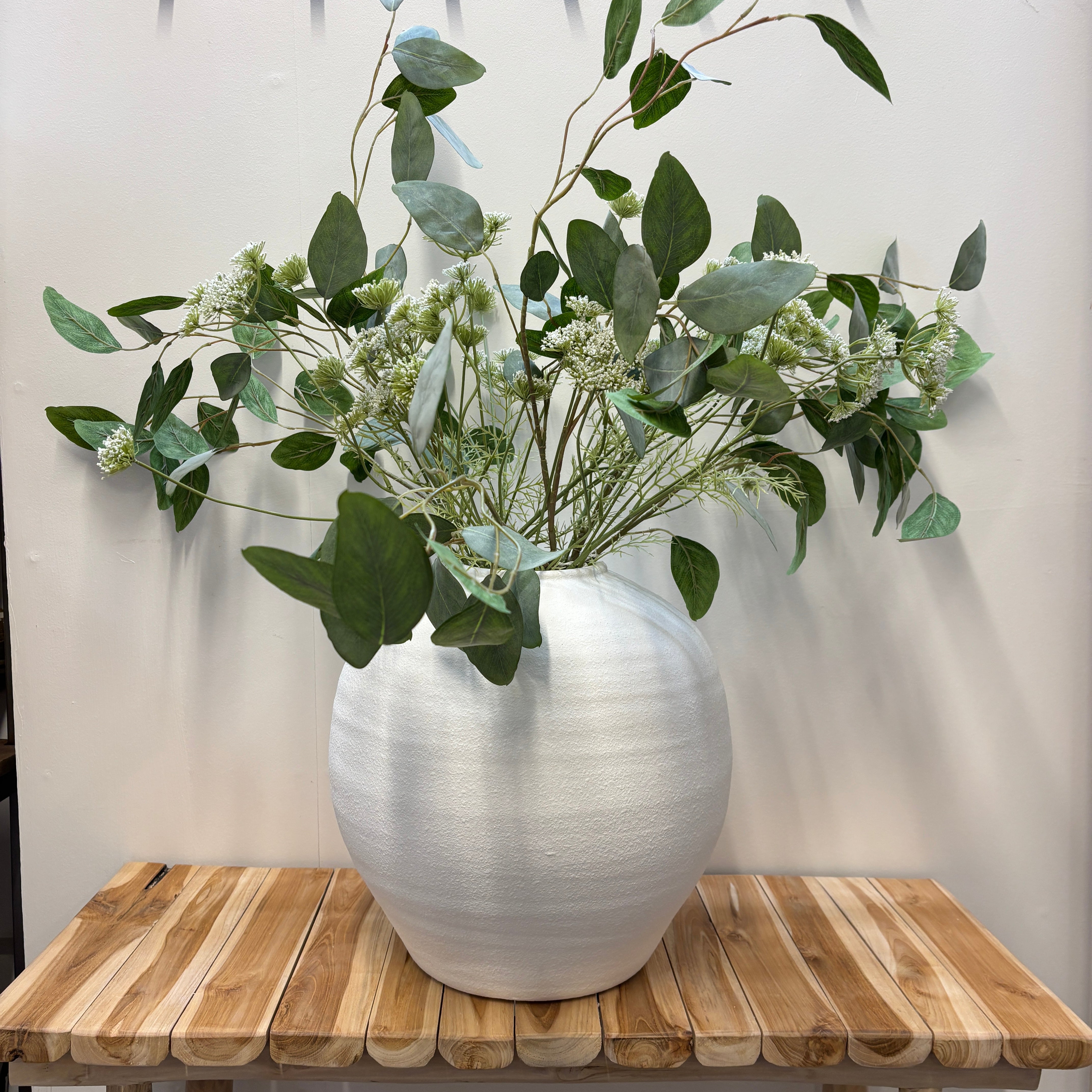 Our White Ball Ceramic Vase brings sculptural elegance to any interior. Handcrafted with a subtle textured finish, this generously proportioned piece makes a striking statement whether styled with foliage, flowers, or left empty as a decorative object.